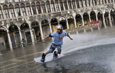 Venezia: la fondamenta di San Giobbe allagata. La particolare conformazione della laguna di Venezia e gli effetti della subsidenza, combinati alla particolare configurazione urbana dei centri della laguna, rendono particolarmente vistoso il fenomeno dell'acqua alta.